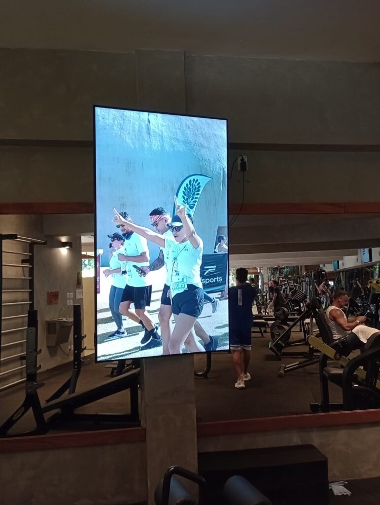 As telas se tornaram parte da experiência da academia, informando, guiando e fortalecendo a atmosfera moderna do espaço.