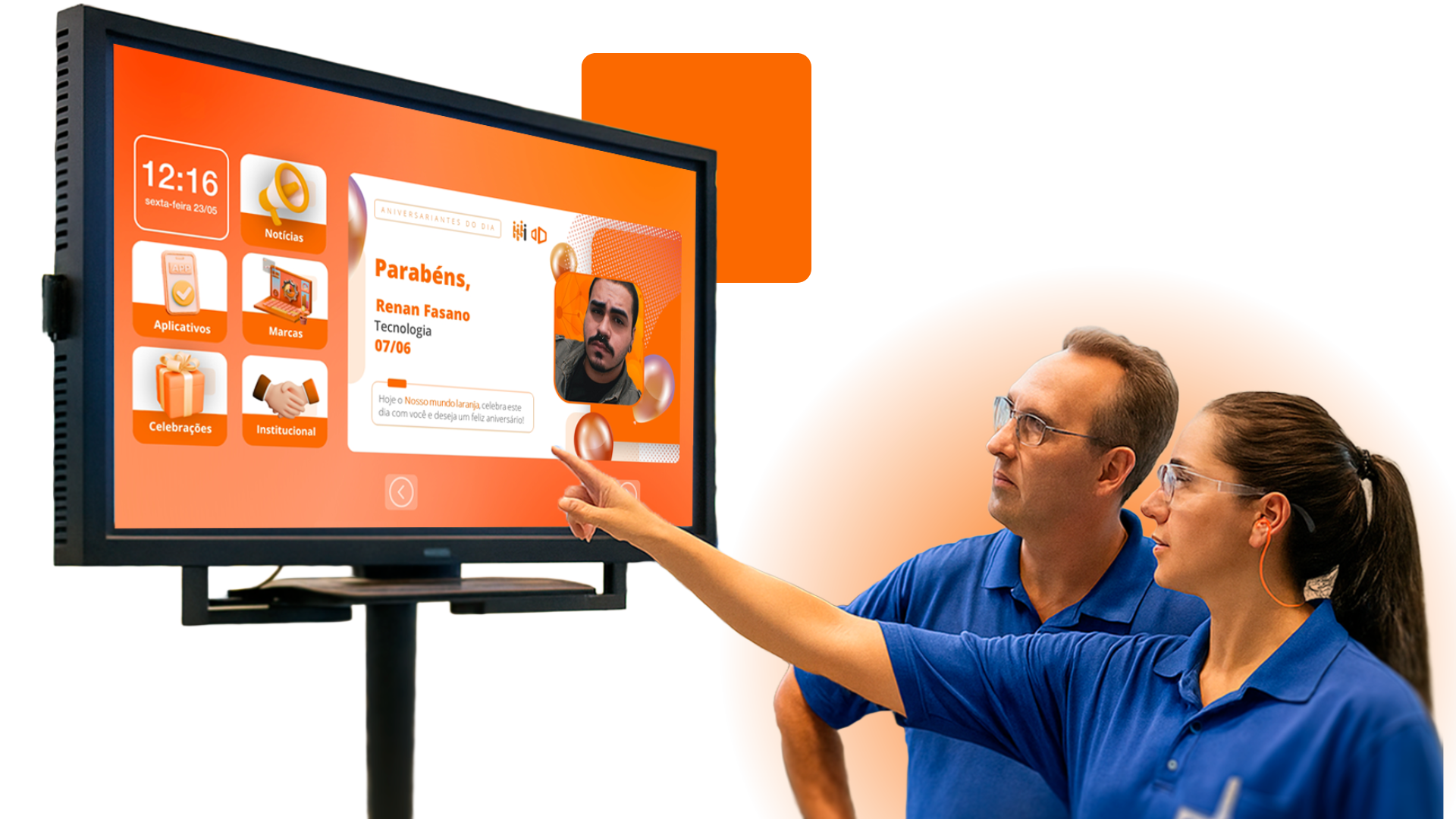 Com o uso da moldura o seu projeto se torna viável e com baixo investimento. A funcionalidade touch oferece interatividade e dinamismo à sua TV corporativa.