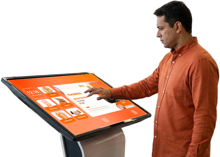 Transforme a TV comum em uma tela touchscreen, sem precisar investir em totens ou telas caras.